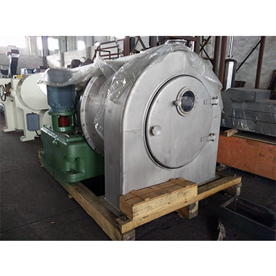 Two-stage pushing centrifuge, two-stage pushing centrifuge is a kind of filter centrifuge with continuous feeding and intermittent discharging of filter cake after separation. It has the following remarkable characteristics: continuous operation, large production capacity, smooth operation; high separation factor, material can be fully dehydrated in the first and second drum, the moisture content of filter cake is very low; when the purity of solid products is required, it can be effectively washed, the washing liquid and mother liquor can be separately discharged; low power consumption and low. Uniform; water content of products can be less than 3%.